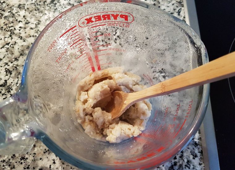We will start by melting the SCI with the two tablespoons of water in a water bath. We will heat gently and crush with the back of a tablespoon until the mixture forms a homogeneous paste.