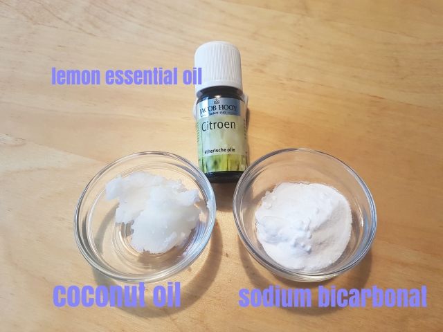 And it is possible to prepare an effective deodorant ready for use with three ingredients: Bicarbonate, coconut oil, and a few drops of lemon EO.