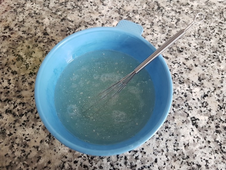 Once all the oils and butters are melted, let it cool. When the temperature of the oils is below 30 degrees, we can add the bleach (mixture of soda, water and coffee) to the mixture of oils and start beating until we reach the “trace” (or cream point)