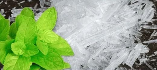 Menthol crystals are strongly scented solid crystals that have been extracted from the essential oil of peppermint or spearmint. Menthol is a common ingredient in commercial pain preparations because it produces a cooling and analgesic sensation when applied to the skin.
