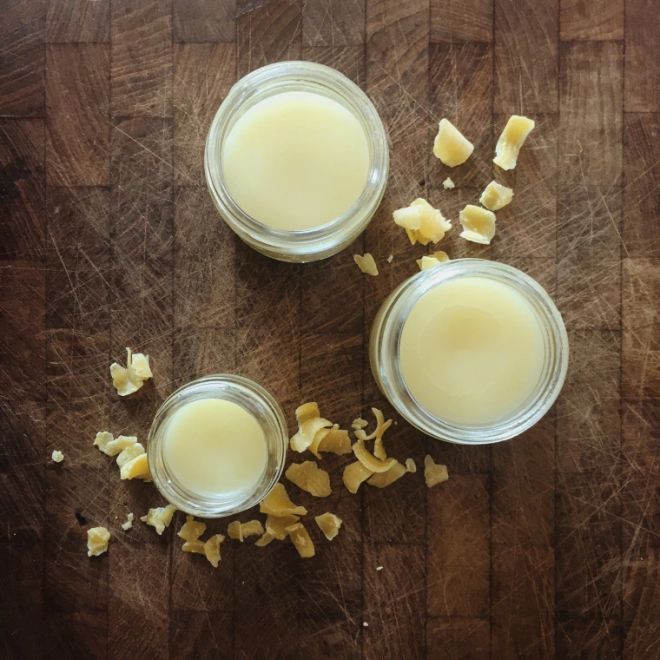 Melt the beeswax and the oil/fat in a bain-marie. At the same time, we heat the distilled water, to which we have previously added the borax. Both phases should be at a maximum temperature of 70 degrees.