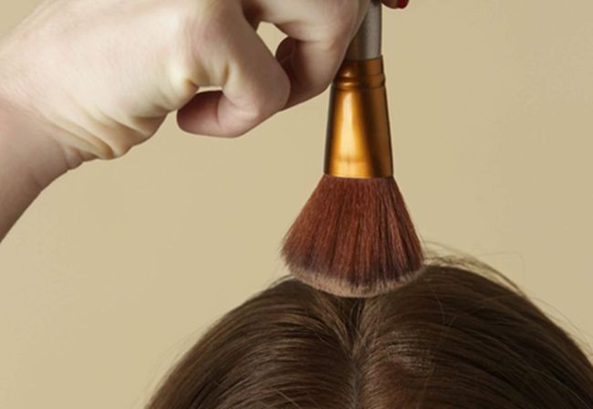 Talcum powder is safe as long as it is sprinkled on the skin and not inhaled. Therefore, our only precaution is to apply it to the scalp with a make-up brush. A little goes a long way, and avoid inhaling it.