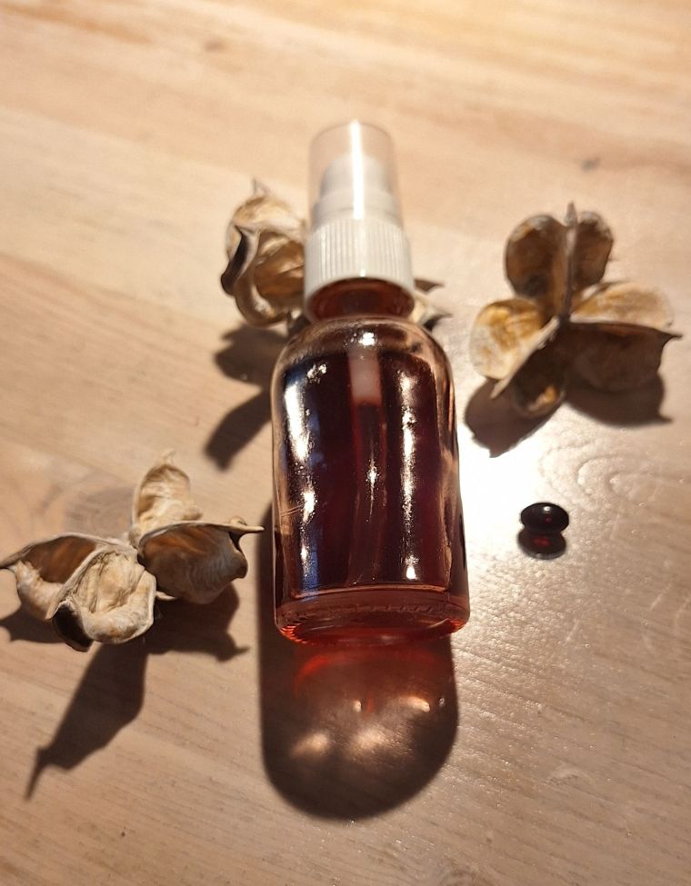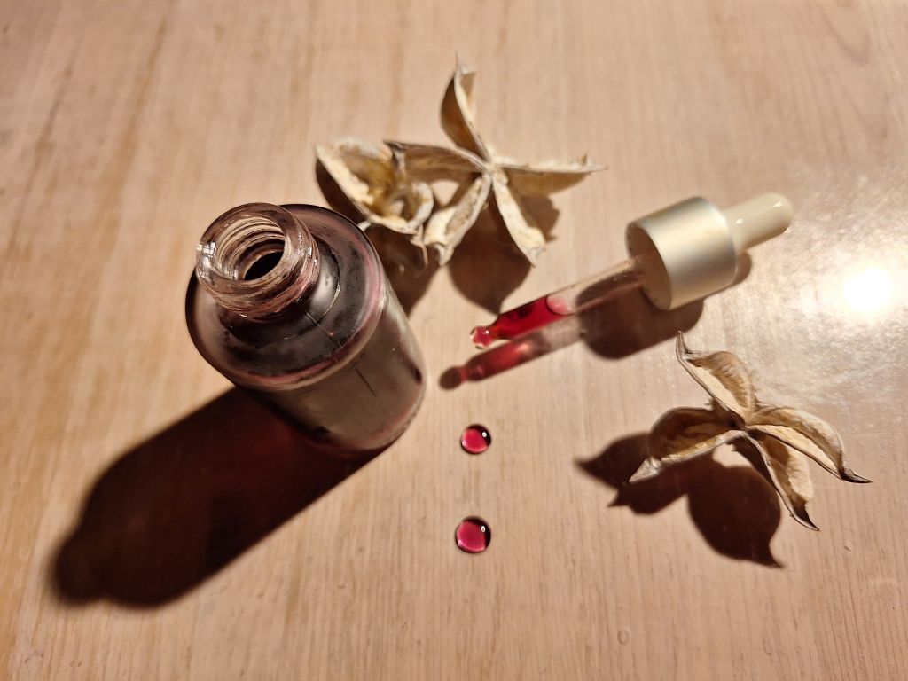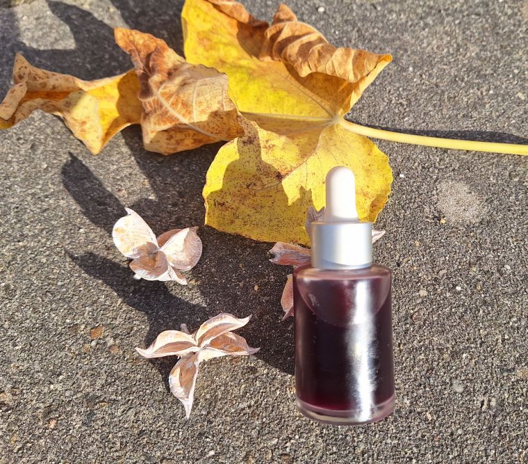 *This serum cannot be prepared with water or hydrolates because alkanet root is fat-soluble and does not mix with water, only with oil or glycerine, of course.