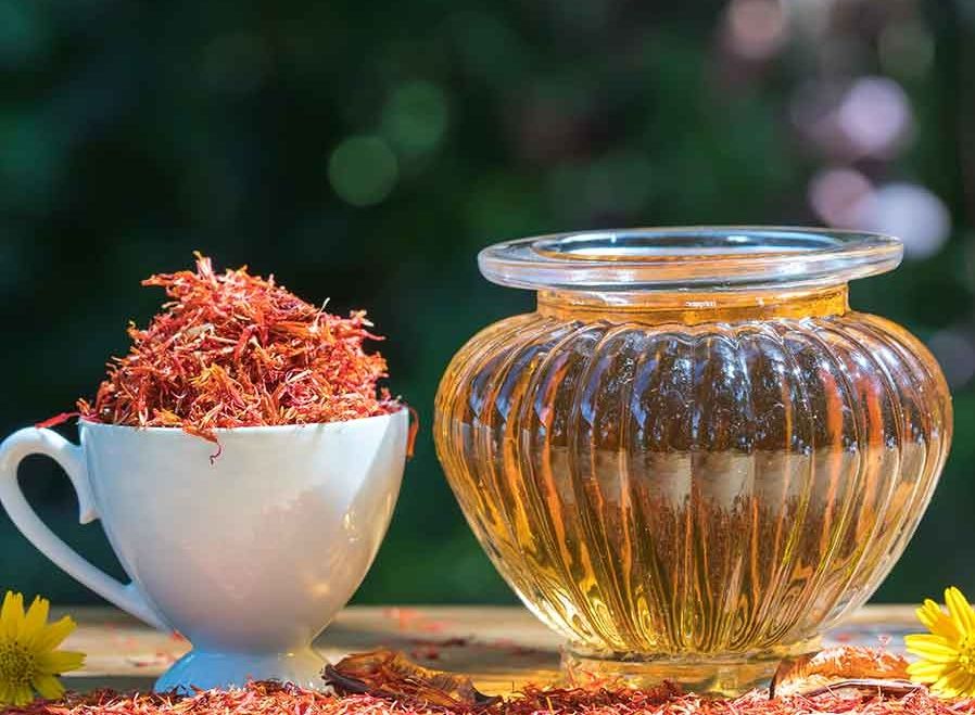 We will need dried calendula flowers for this. Fresh herbs can also be used to prepare the infused oils, but this is not a good idea because the water content of fresh flowers and herbs tends to create moulds and spoil the oleates.